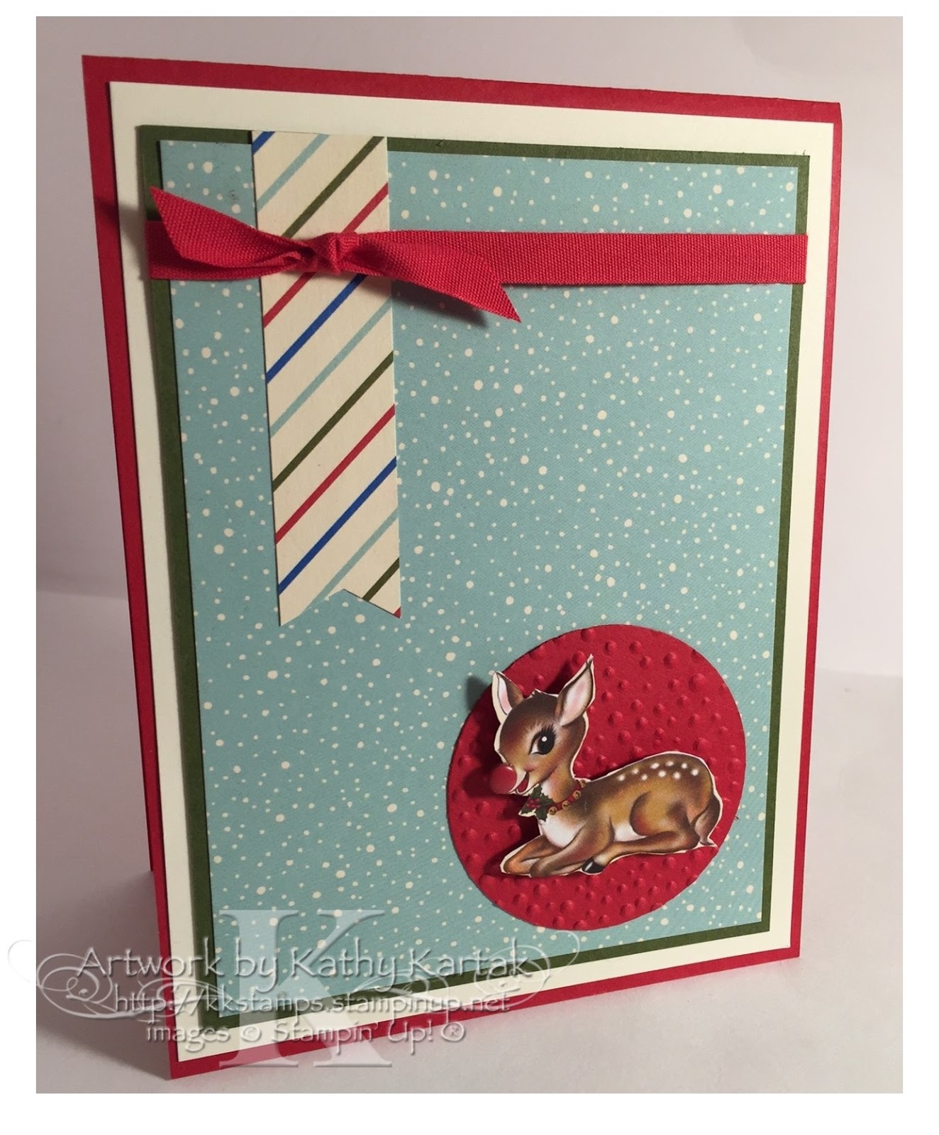 #stampinup When I was a kid, I loved watching the Christmas specials on TV. “Rudolph the Red-Nosed Reindeer” was one of my favorites, along with the “A Charlie Brown Christmas,” of course! That was back in the days when there were only three channels–unless you counted the UHF channel that showed “Speed Racer” after school.