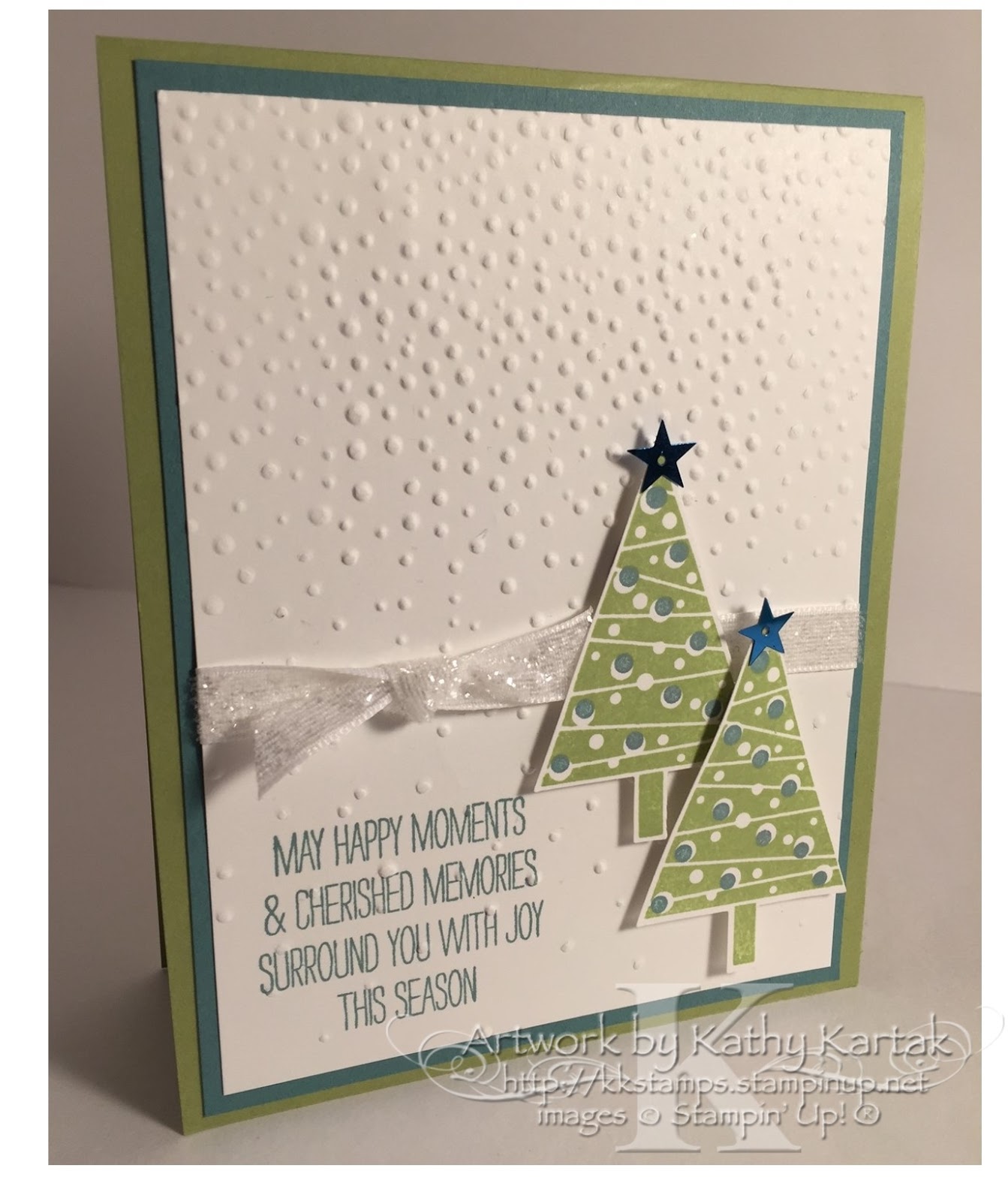 Kathy, I really like the embossing and the use of the two-step trees for your focal images. Thanks for playing along this week at Global Design Project.