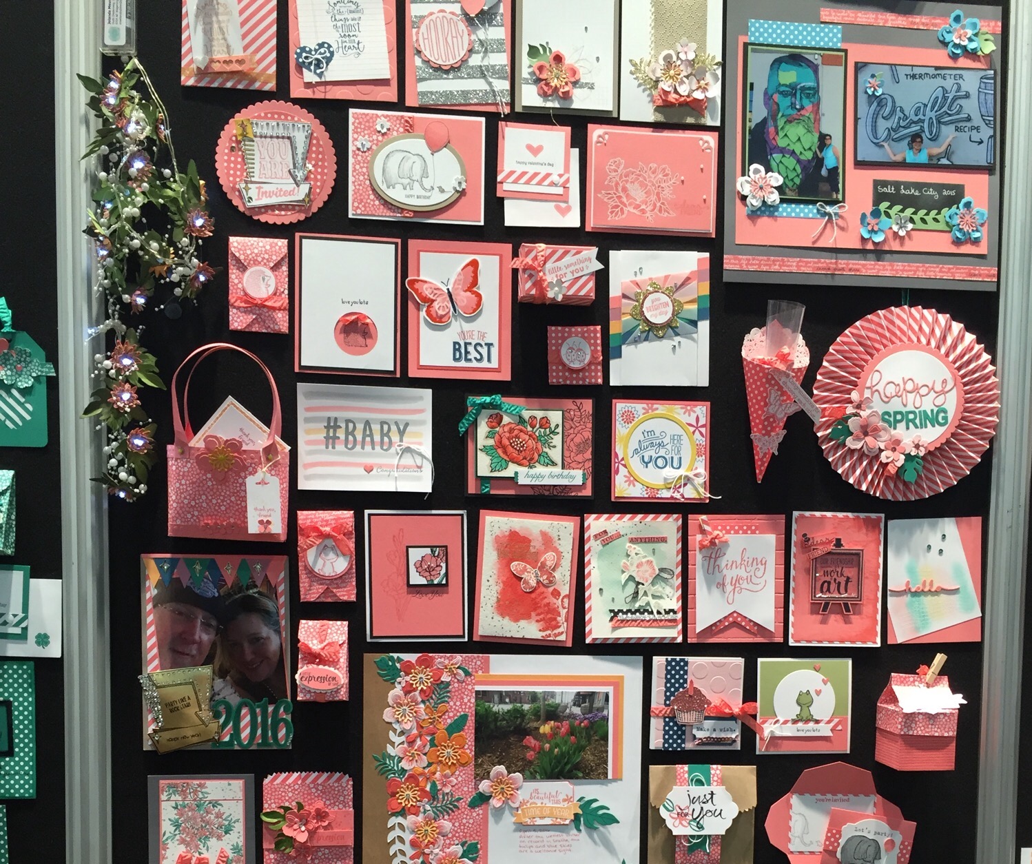 I also took pictures of the display boards–I thought I’d taken pictures of all five of them, but apparently I can’t count! You can see just a little bit of Emerald Envy peeking out to the left of the Flirty Flamingo board and a tiny bit of Peekaboo Peach to the left of the Sweet Sugarplum board.