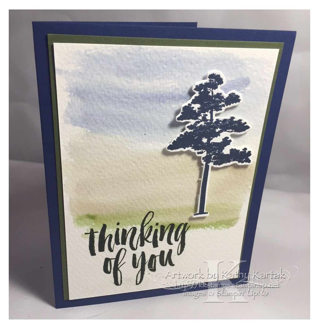 I adhered the stamped piece to a 3-7/8″ by 5-1/8″ piece of Mossy Meadow Card Stock and then onto a Night of Navy Card Stock card base.