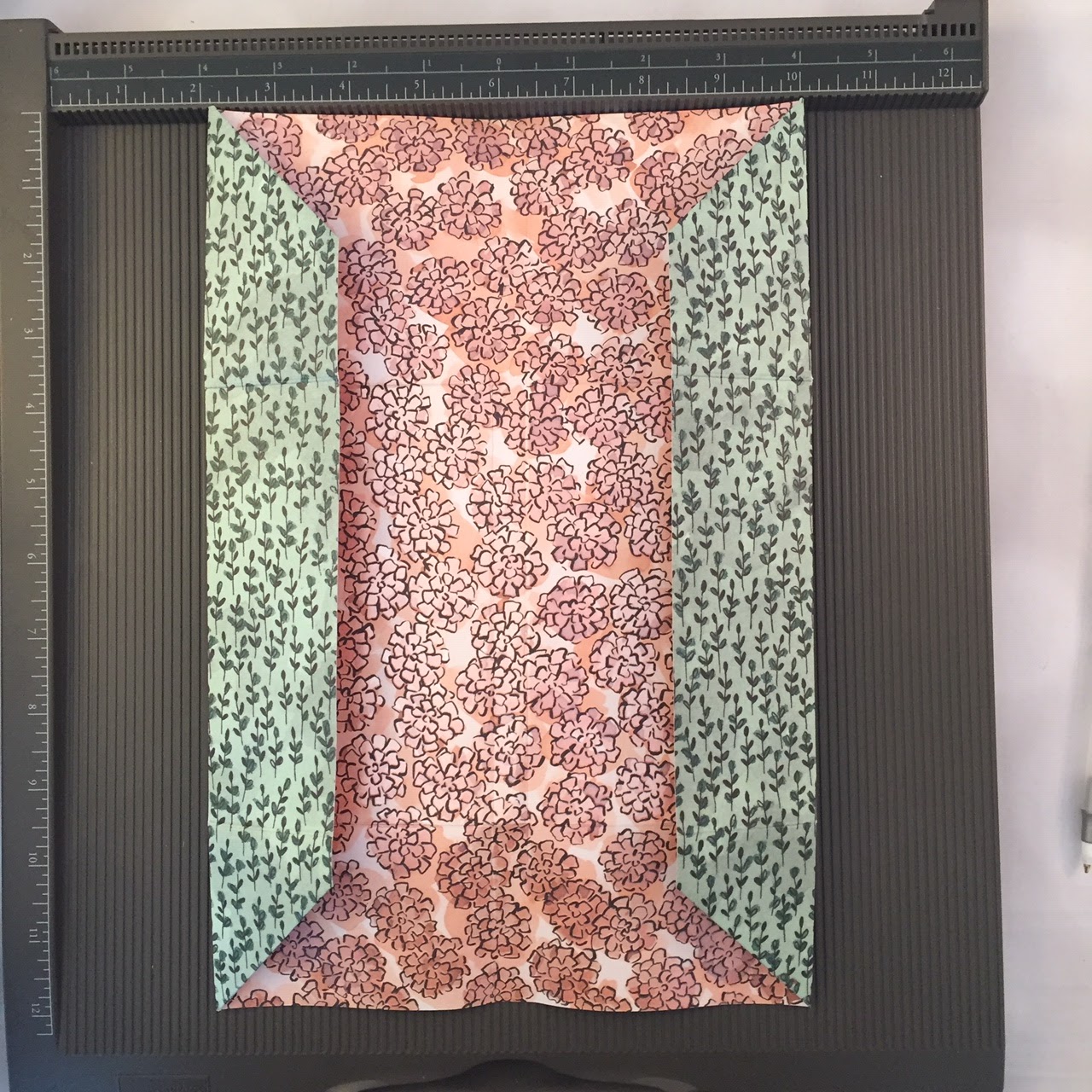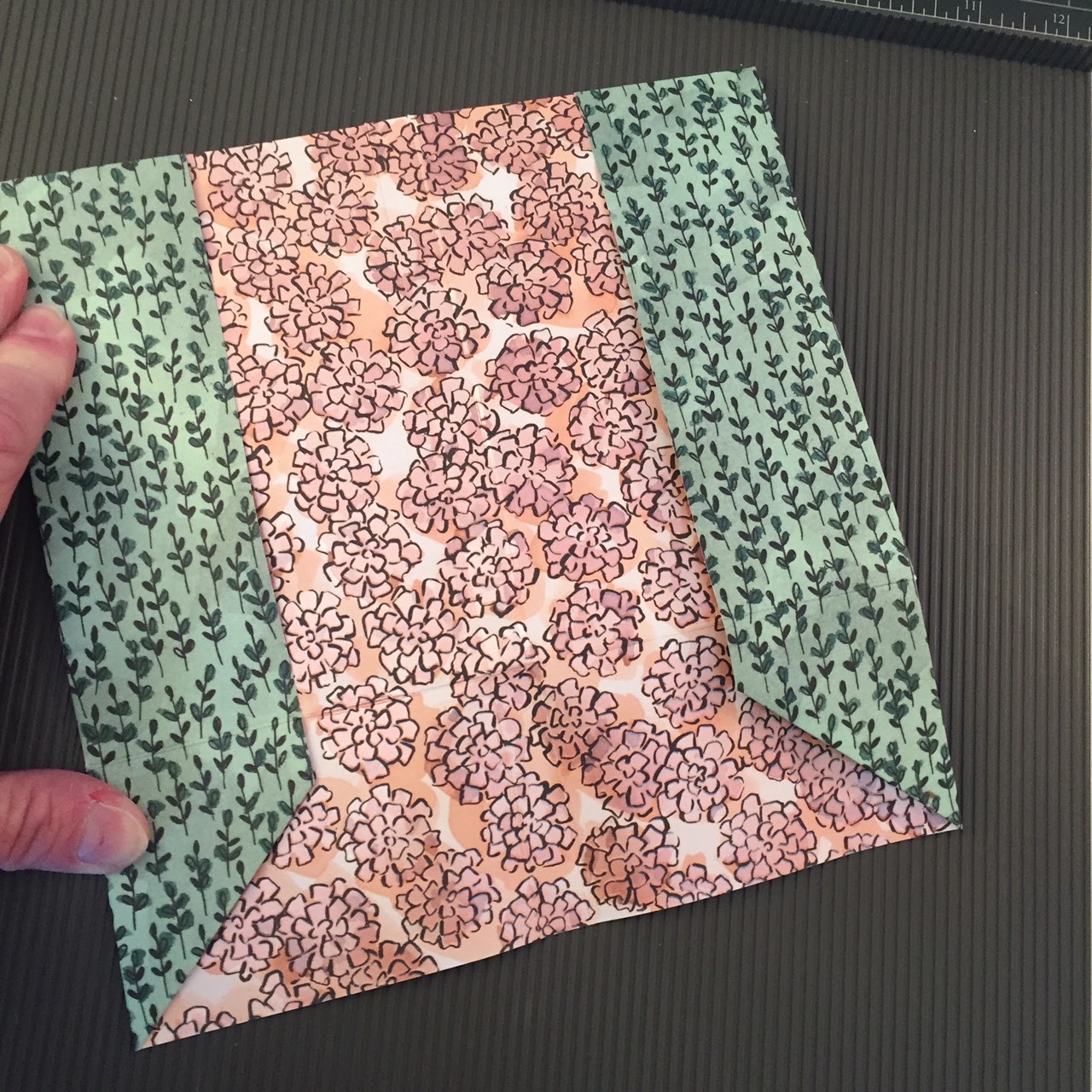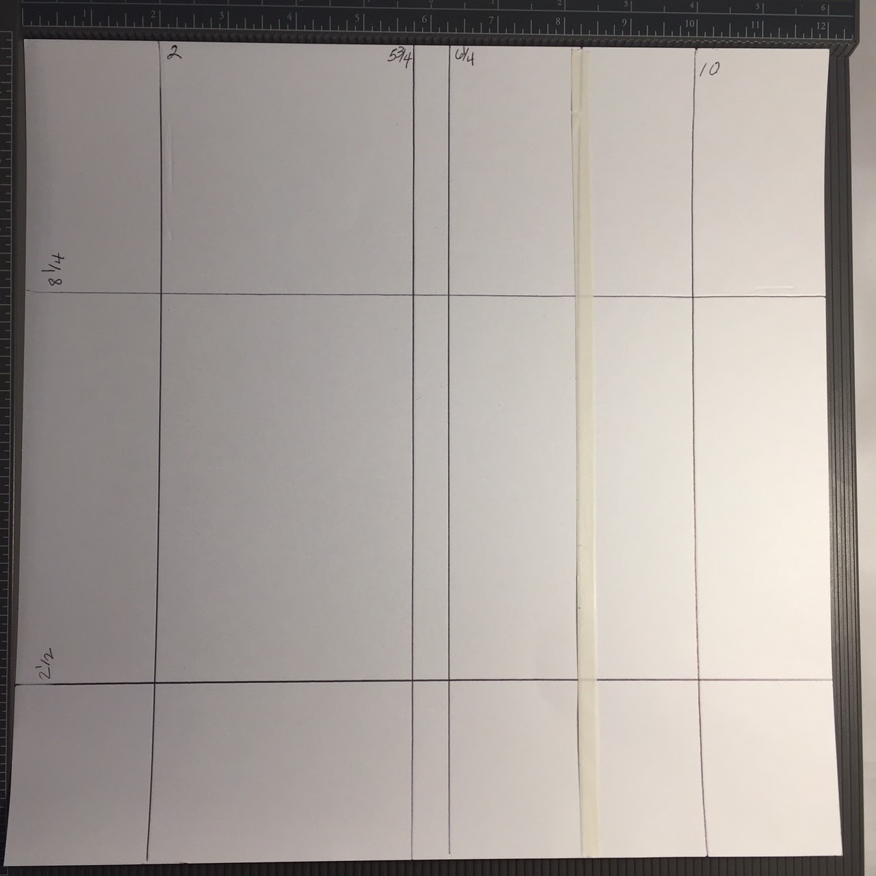 Turn the DSP one quarter turn. Score at 2″, 5-3/4″, 6-1/4″ and 10″. (Don’t mind the mistake I covered with Tear & Tape).