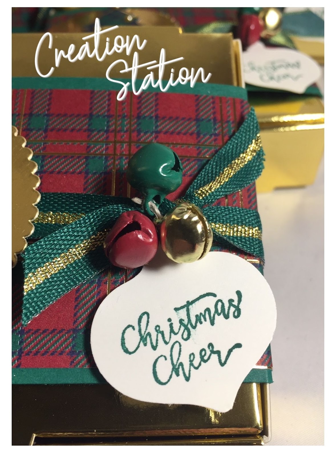 Our theme for today’s Creation Station blog hop “is put a ring on it.” What fun! I have a fun project that’s quick to make and oh so pretty. And it rings in the Christmas season, with bells that ring, and boxes that are ringed by belly bands! Take a look.