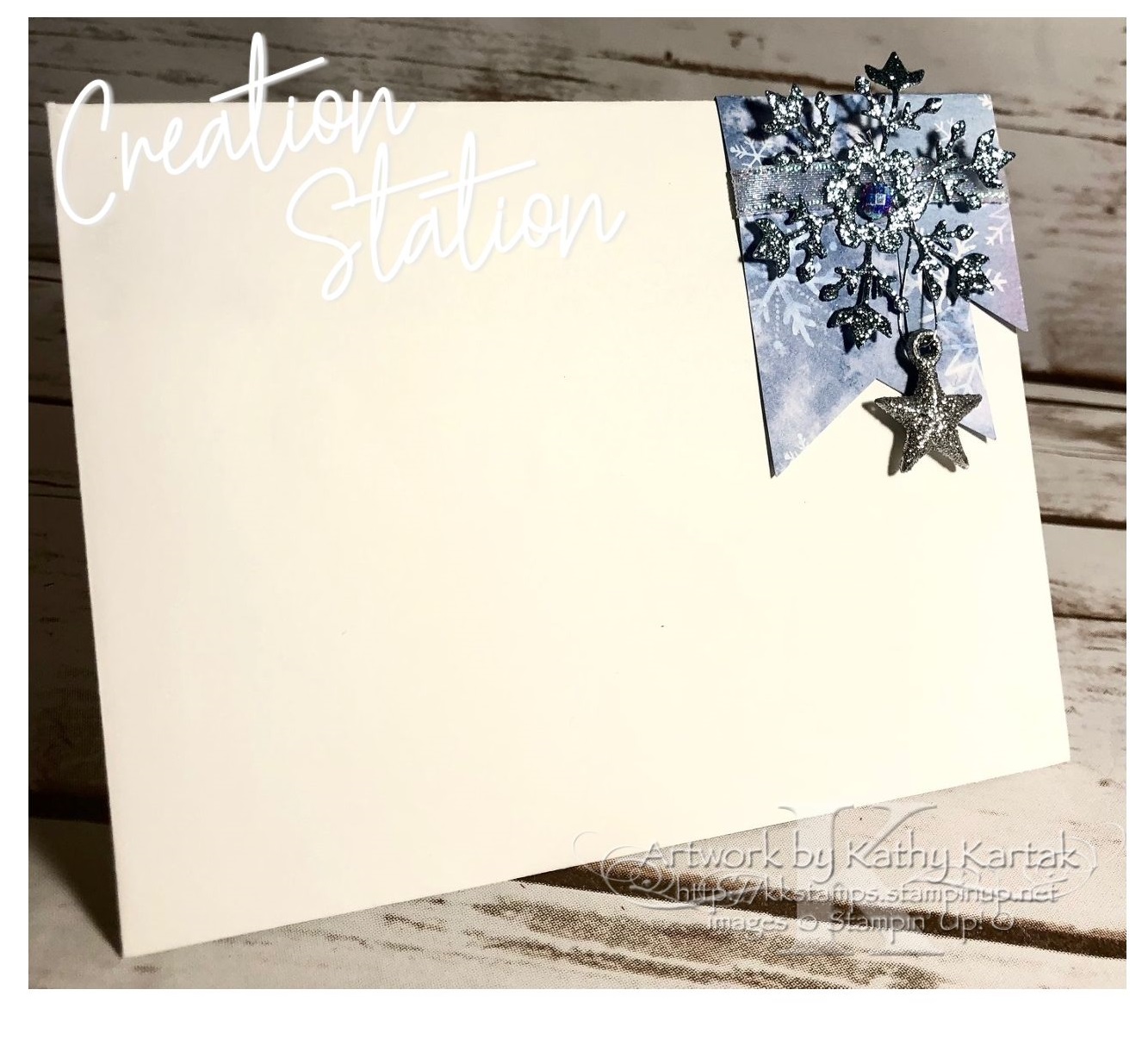 Hello and welcome to December! Can you believe this year of years is just about to be over?! Mind you, I don’t think that just because the calendar turns from one month to the next, or one year to the next, that anything will change drastically, but I do hope that the future is bright and shiny! And speaking of bright and shiny, our Creation Station blog hop theme is “Ice, Ice Baby” in which we are to create a project that sparkles and shines.
