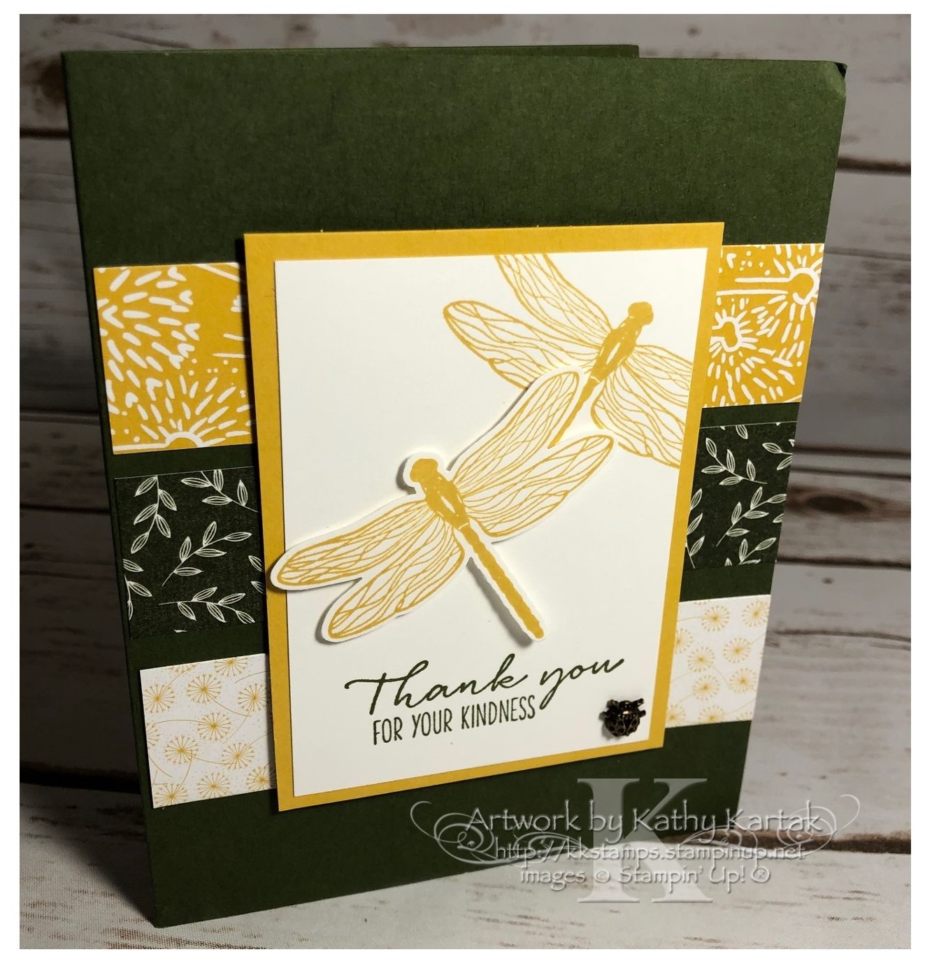 #stampinup #faithfulinkspirations Welcome to day two of our week of dragonflies! I’ve got another simple but adorable card today that features the “Dragonfly Garden” stamp set. This card uses different sheets of the Dandy Garden Designer Series Paper and shows a different color palette.